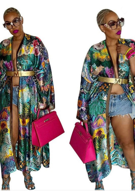 • Loose Fit Multi-Color Duster (Green)